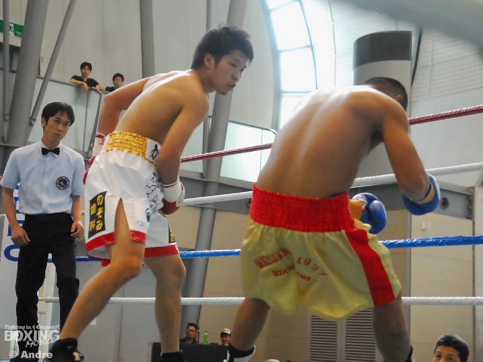 試合は、序盤から丸木の多彩な左が冴え渡り一方的な展開。イラワンも飛び込んでワンツーを振るうが、丸木のボディワークについていけず防戦一方となる。丸木の左ボディを連打でもらっていたイラワンは徐々に動きが止まり1ラウンド終了間際、丸木の左ボディからの右が決まりイラワンがダウン。キャンパスに後頭部を強打したイラワンの様子を見たレフェリーが即座に試合を止めた。