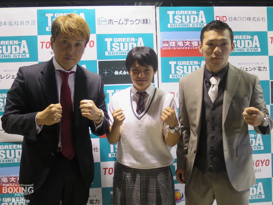 日本スーパーフライ級1位の奥本貴之(グリーンツダ)と、日本女子ミニフライ級5位の女子高生ボクサー・小村楓香(グリーンツダ)が29日、大阪市内のグリーンツダジムで次戦の意気込み会見を行った。奥本は7月23日(日)、大田区総合体育館で日本スーパーフライ級チャンピオンの船井龍一(ワタナベ)に挑戦する。小村は、8月11日(金)、枚方市立総合体育館で日本女子ミニフライ級挑戦者決定戦として同級7位の一村更紗(堺東ミツキ)と拳を交えることが発表された。