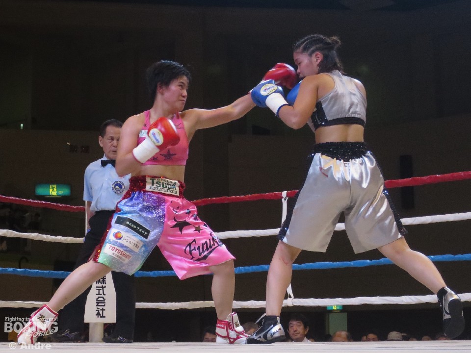 また、この日は日本女子初代王座決定トーナメント、ミニフライ級6回戦も行われ、同級5位の小村楓香(グリーンツダ)と同級7位の一村更紗(堺東ミツキ)が拳を交えた。