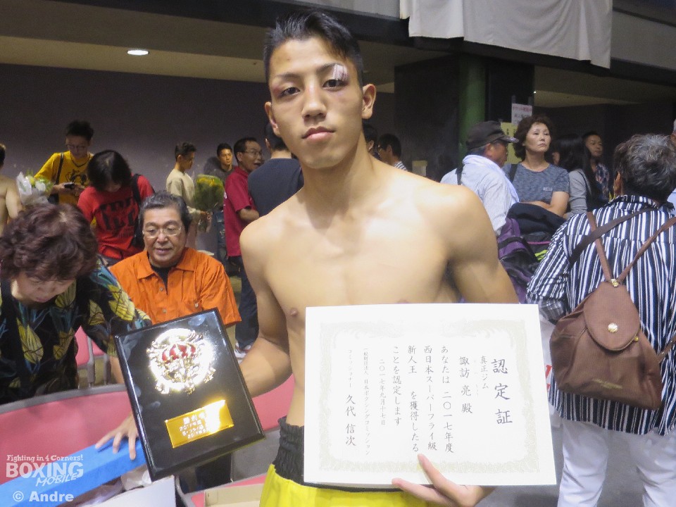 技能賞は、体格で勝る対戦相手の松谷に臆することなく左フックを起点に最後まで自身のボクシングを貫き高い技術をみせた諏訪亮(真正)が獲得。「とりあえず勝ててよかったです。次もあるのであかんところをなおして頑張ります」と、前を向いた。
