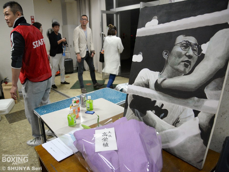 メインイベントでは李冽理氏が登場。李氏の出身校は大阪朝鮮高校だが、東京で練習することが多く、故人も正真正銘の師だったと振り返る。「東京の部員には厳しかったが自分には優しかった。リングで寝泊まりしたことも貴重な財産となっている」とOBの一人が描いた故人の肖像画を見ながら懐かしんだ。朝鮮大時代には 同大学史上唯一の全日本選手権決勝進出を果たし、細野悟(法政大)と接戦を繰り広げている。今回のスパーでは2回に2度のカウントを奪ったあと、相手も金舜寛氏が執念を見せ、ラッシュでカウントを奪い返す激闘となった。