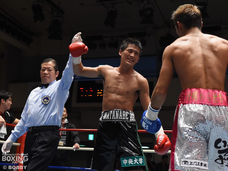 不完全燃焼で試合を終える形となった金澤は「2ラウンドに右が当たりこれはいけると思っていた矢先だったのですが…。大学リーグ戦で後楽園ホールのリングには慣れているつもりだったが、緊張してジャブが出なかった」と苦笑い。