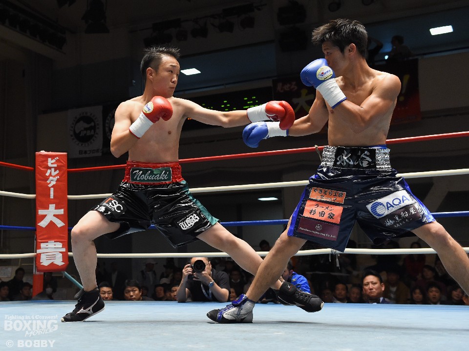 16日に後楽園ホールで開催された「DANGAN197」ではA級&B級トーナメントがスタート。メインイベントではA級トーナメント予選スーパーフェザー級6回戦で三代大訓(22=ワタナベ)と仲里周磨(21=ナカザト)が対戦。両者とも鋭いジャブの差し合いを見せ白熱の攻防を繰り広げた。アンダーカードではアマチュア62戦のキャリアを持つ金澤宣明(23=ワールドスポーツ)のデビュー戦が行われた。