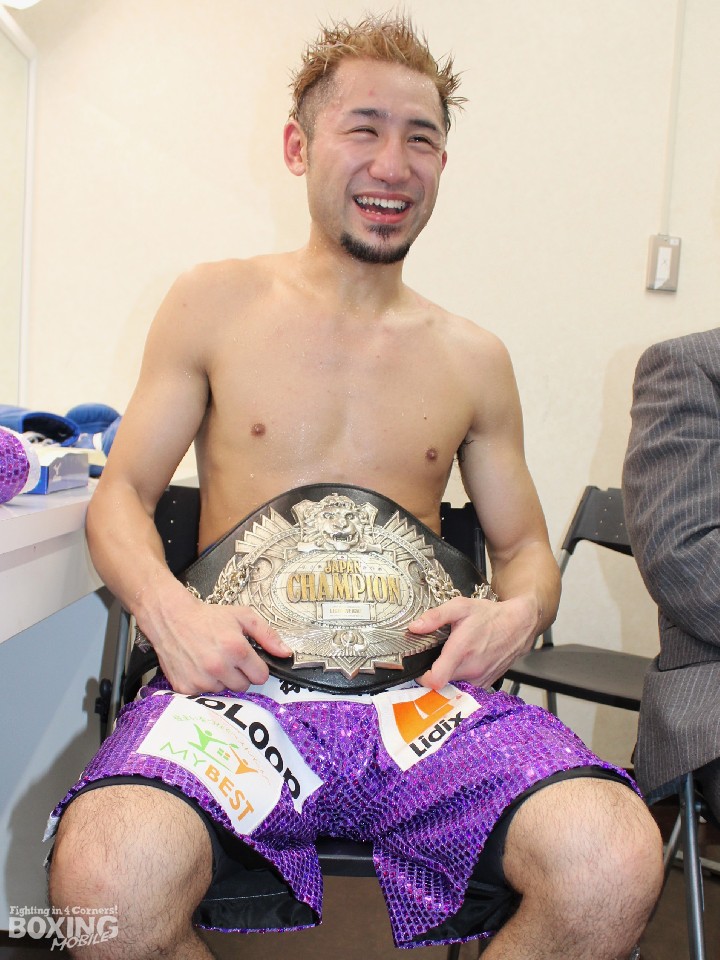 ベルトを膝に置いて会見に臨んだ吉野は「こうしてベルトを触ることができてうれしい。大勢の応援団の中で試合をすることができたので楽しもうと思った」と満面の笑みを浮かべた。松下のラフな攻撃にイライラしてしまったという吉野は「足を使ってクリンチを駆使してきて予想以上にやりにくかった。良い勉強になりました」と話した。ボクシングの名門、作新学院から初の日本王者誕生となった吉野は「日本王者になるのは第一の目標。ここからがスタートです!」とさらなる飛躍を誓った。