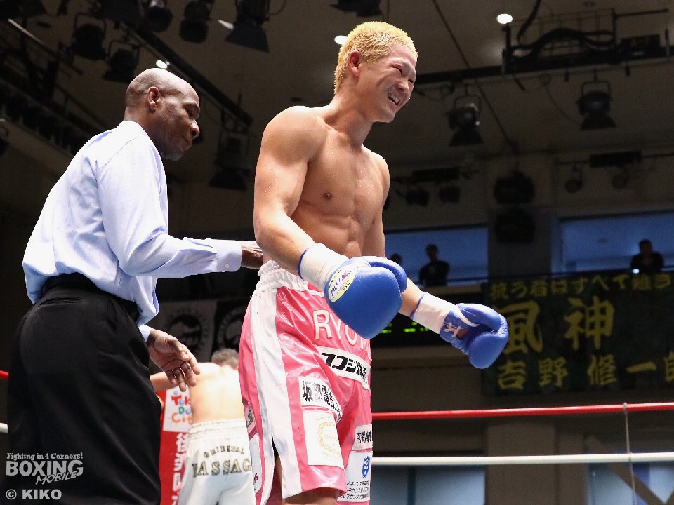 矢田が思い切りの良い右を叩き込んでロープに詰めてペースを掌握。守勢を強いられた尹だが、4回から左ボディで動きを止めにかかった。中盤は接近戦でボディへの打ち合いとなったが尹の有効打が上回った。7回、矢田は右ストレートで顔をのけぞらせ見栄えの良いラウンドを作ると最終回もワンツーをヒットしポイントを奪った。ジャッジ2者が矢田を支持し接戦を勝ち抜いた。