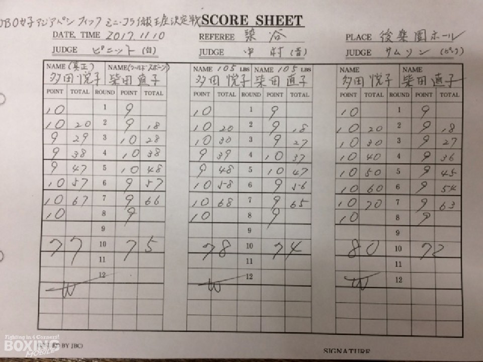 10日に後楽園ホールで開催された「Earnest Efforts.6&Mega Fight57」では前IBF女子世界ライトフライ級王者の柴田直子(ワールドスポーツ)と前IBF女子世界ミニフライ級王者の多田悦子(真正)がWBO女子アジア・パシフィック・ミニフライ級王座決定戦に出場。実力者同士による一戦は初回から白熱の攻防を繰り広げた。