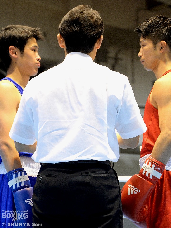 福井市内の福井産業会館で行なわれている第87回全国選手権で「最大の目玉」といわれてきた田中亮明(中京高校・教員※田中恒成の兄)対堤駿斗(習志野高校※世界ユース選手権優勝)が、25日、バンタム級・準決勝で実現し、“最強の高校教師対最強の高校生”は緊張ムードに満ちたなかでスタートとした。両者は立場や世代こそ違うが、選手活動のモチベーションは「2020年の東京五輪で金メダルを獲ること」で一致しており、目標を日本の先頭で追うためにも、この注目の一戦は重要となっていた。