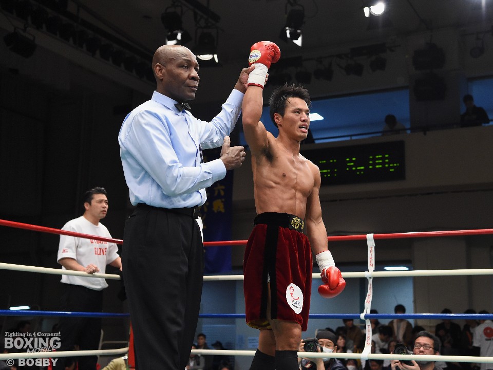 右ジャブは突くものの左の手が出ず、硬い立ち上がりの遠藤だったが、セコンドに発破をかけられると3回にワンツーの好打から一気に畳み掛け、2度のダウンを連取しレフェリーストップを呼び込んだ。試合後、「大和心トレーナーにもっと手数を出せと怒られた。練習ではできているんですが、今日は倒そうと気負いすぎた」と弁明した遠藤だが、きっかけを掴んでからの集中打は見事なもの。27歳から始めたボクシングを花開かせることが目標で、まずは今年の新人王戦で頂点を目指す。
