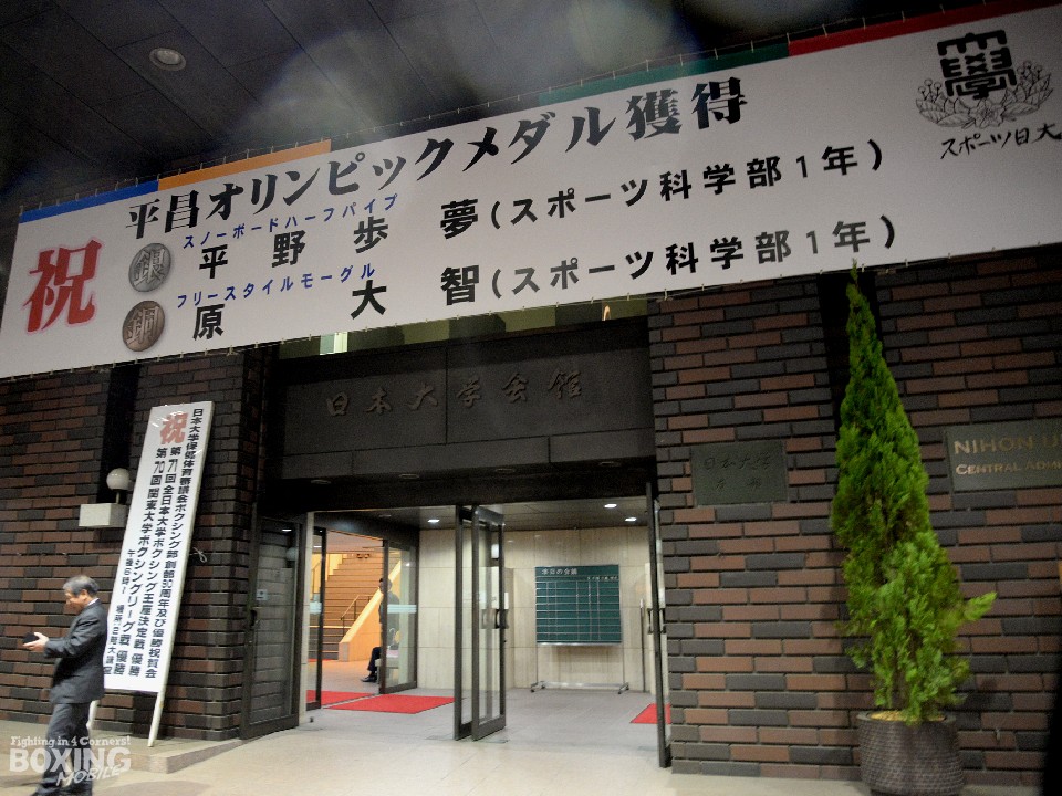 東京・千代田区にある日本大学会館では、16日、同校ボクシング部が2017年の第70回関東大学リーグ戦と第71回全日本大学王座決定戦で4連覇をはたした祝賀会が、創部90周年を兼ねて開かれた。この席では、日本ボクシング連盟の山根明会長が同校の客員教授になることも紹介され、同会長は「この名誉に動揺しているが、男の冥利に尽きる。ぜひ大学のためにがんばらせて頂きたい」と語った。