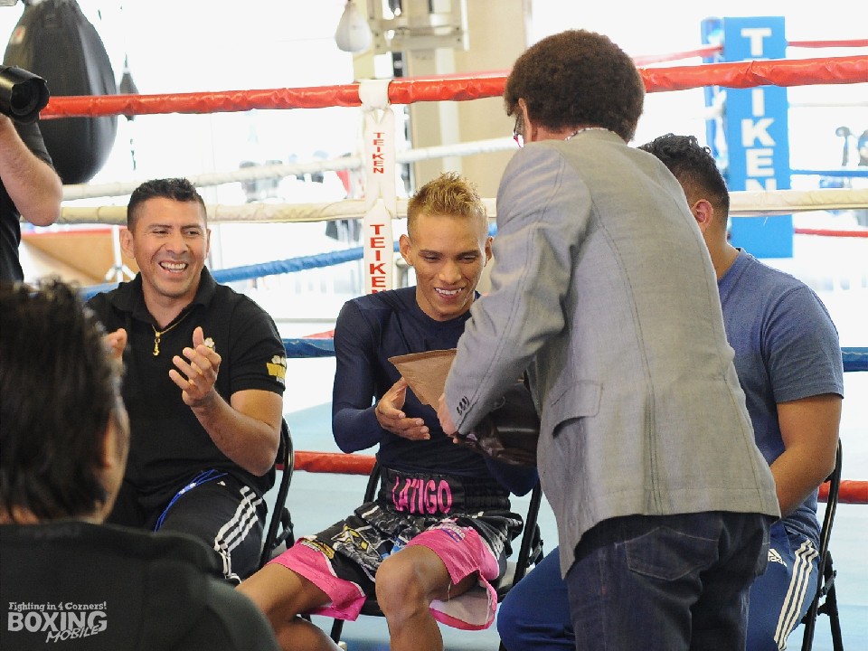 また、練習前の会見で「比嘉はパワフルですべてのパンチに威力がある。そのパンチに対応する練習をしてきたし、技術的には私の方が上。クレバーに戦う」と話すロサレスに対し、「ニカラグアといったらコレ」とニカラグアのコーヒー豆をプレゼント。相手を飲むという具志堅会長独特のパフォーマンスで比嘉を援護した。
