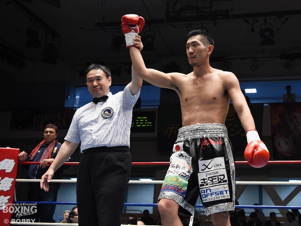 第4試合ではOPBF東洋太平洋ライトフライ級13位の山内涼太(23=角海老宝石)と日本フライ級11位の堀陽太(31=横浜光)が激突。サウスポー堀が先に仕掛けたが、山内がプレスをかけて上下に打ち分けると後退し、4回に右ストレートで倒れた。劣勢の堀は、手数を増やして反撃を試みたが、流れを変えるまでに至らず被弾が増えたところでタオルが投入された。