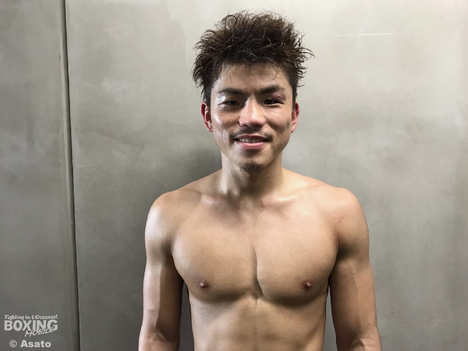 「今回は体調もよかった。練習でもボディ打ちを中心にしていたのでボディで倒しそうな予感はあった。性格上、意識が顔に行きがちだが、今後に向けて、長丁場を考えたらボディ打ちを練習しないといけないと思っていた。それが少しは出せたかな。試したかったのは距離感だったりディフェンスだったりとか。初回は距離をとって相手のパンチを見切ろうと思っていた。その中で、セコンドの父から右アッパーから左ボディを打てと指示があって、打ったらドンピシャのタイミングだった。世界戦の心構えはできている。 自分としては無理をしてスーパーフライ級で挑戦するもバンタム級で戦いたい 」