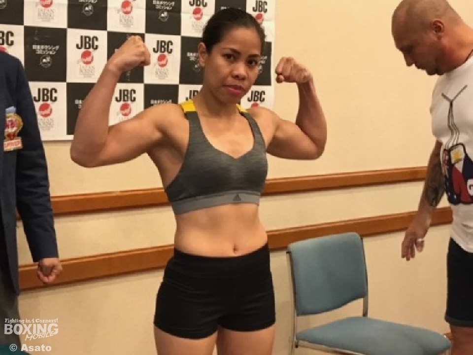WBO(世界ボクシング機構)女子ライトフライ級王者の天海ツナミ(山木)が明日29日に沖縄コンベンションセンターで開催される「女性が輝く社会支援チャリティー試合」のメインイベントで挑戦者のグレッチェン・アバニエル(比)を迎え初防衛戦に臨む。その前日計量が28日、同会場で行われ両者ともリミットちょうどの48.9kgでパスした。