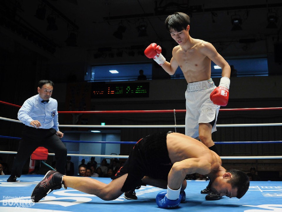 中間距離での距離の探り合いから牛島の右クロスが炸裂! 立ち上がった保坂を見てレフェリーが試合を止めた。牛島が鮮やかなノックアウト勝ちを収めた。