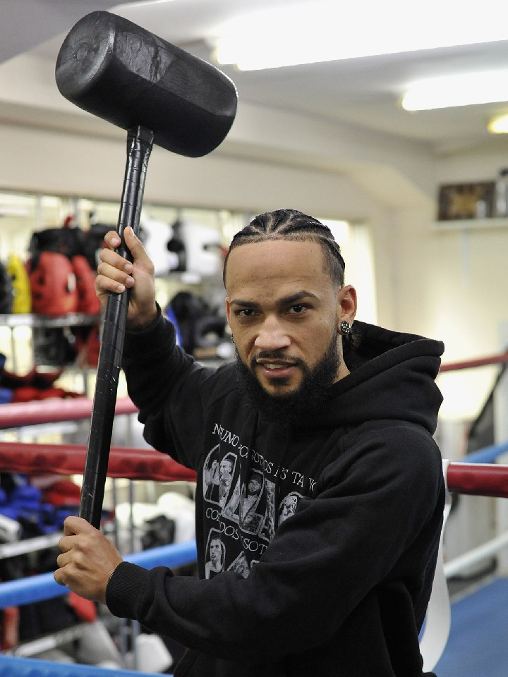 慣れない会見に段々と口数が少なくなったメディナだが、最後に入場時の小道具として使う黒い大きなハンマーを渡されると、「俺の拳はハンマー! 対戦相手がもう振り下ろさないでくれと言ってくるほどだ」と得意げに振りかぶって見せた。はたして、その実力やいかに。