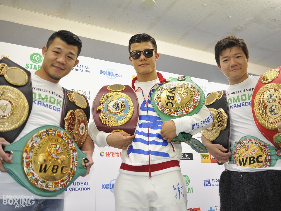 金平桂一郎会長も今後のプランを聞かれ、「選択試合か、(正規王者との)統一戦か、WBCの指令を待つことになると思う」とし、「まずは心身ともにエネルギーをチャージして、それから青写真を描きたい」とコメント。さらに「(日本で試合ができなかった)暗い時期をよく乗り越えたと思う。3年間の苦労がようやく日の目を見た」と労い、「これからも亀田家の期待を一身に背負い大変だと思う。私もファンが喜ぶ試合をマッチメイクしていきたい」とサポートを約束した。