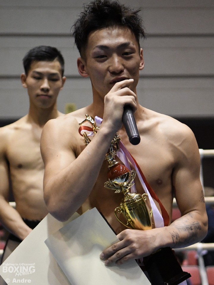 技能賞のスーパーフライ級西軍代表の大橋哲朗(真正)は「賞をもらえたのはうれしいです。全日本では後楽園ホールを飲み込む試合をしたいと思います」と拳を握った。