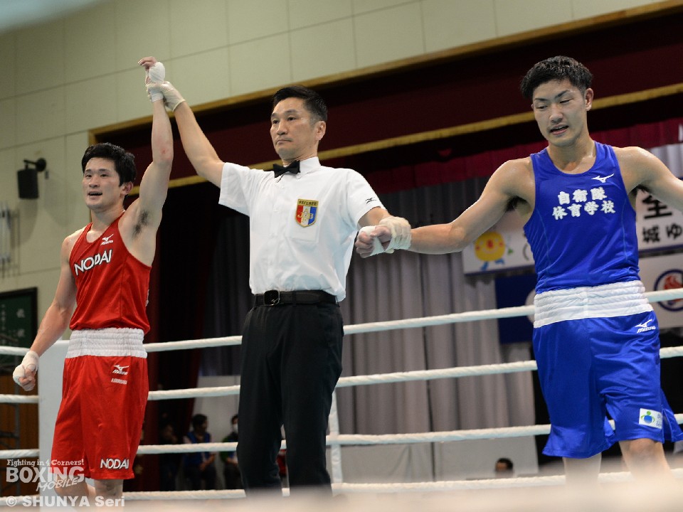バンタム級は国体に続いて村田が優勝。前半はルーキーの松本圭佑(東京農業大)に奮闘を許したが、中盤から豊富な手数で追いあげ、3-0で勝利した(2者が引き分け)。