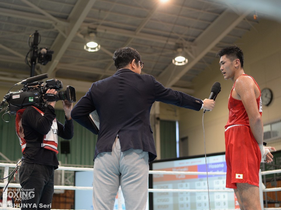 ライトフライ級では高校時代に全国優勝を多く経験した重岡が長谷部大地(駒澤大)を破って初優勝。先日の世界大学選手権で銀メダルを獲得し、その勢いに乗った中での優勝だが「自分より強い選手はフライ級に移ったので優勝は最低限だと思っていた」と自分に厳しかった。2020年東京五輪の実施階級を意識して、ライバルの坪井智也(自衛隊体育学校)とそろってフライ級に転向した柏崎は、フライ級で実績豊富な田中亮明(中京高校・教員)を破って優勝。上のステージを見据えられるが「田中はケガで練習できていないのが初回で分かった。次回も勝てるとは限らない」と控えめなコメント。