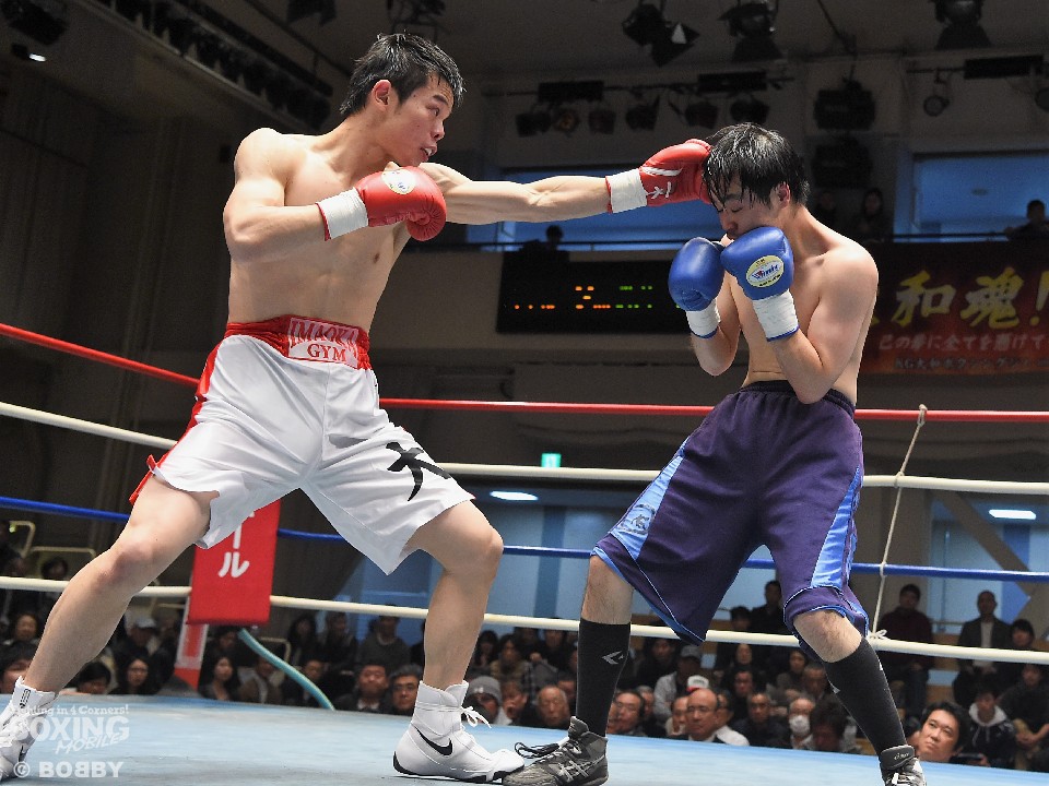 馬場リュウジ(25=横田S)とウェルター級4回戦で激突した山田は、初回から距離を詰めてワンツーを好打。サウスポー馬場と激しいペースを争いを繰り広げたが、有効打を決めて3連勝を飾った。控室に戻った山田は、「初回が終わってから発破をかけられて気合いが入った。今日は石本さんとの練習の成果が出なかったのでさらに精進していく」と感想を口にした。