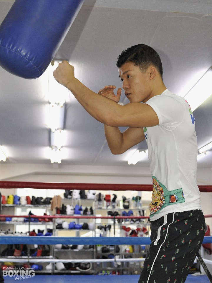 試合から2週間後といつもより早めの練習再開なだけに、この日は縄跳び、シャドー、バッグ打ちと軽めに終始したが、3年半ぶりに返り咲いた世界王座とあって練習中に記者と談笑するなど笑顔が絶えなかった。