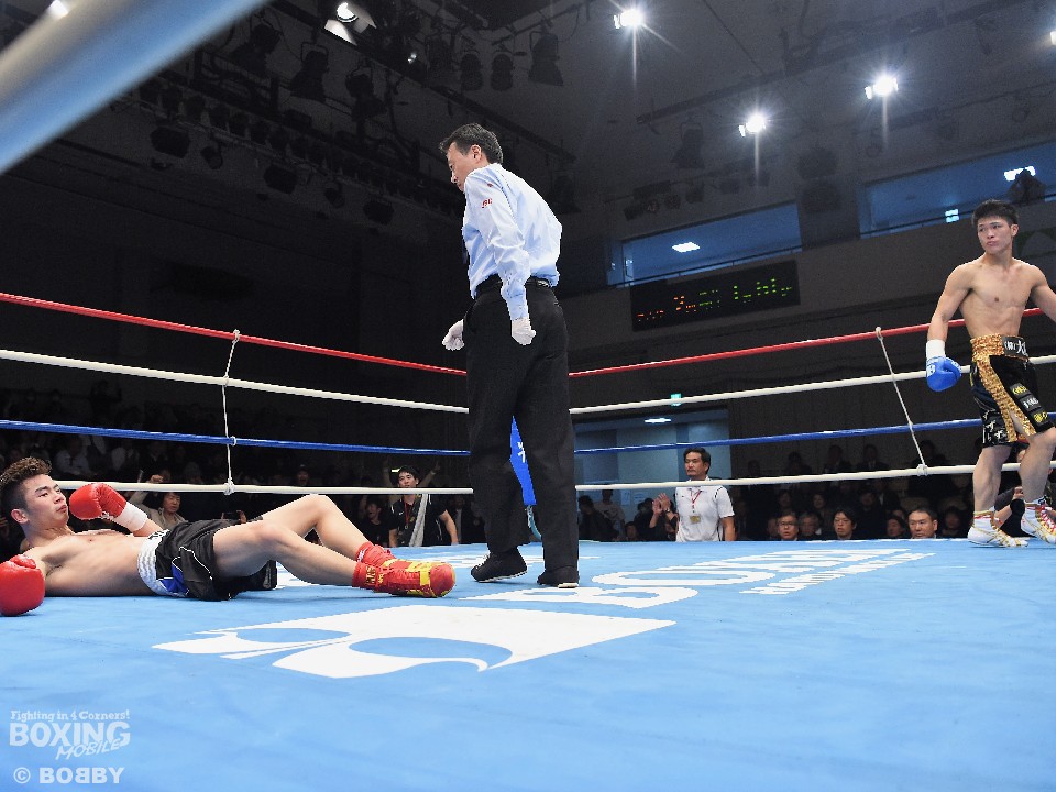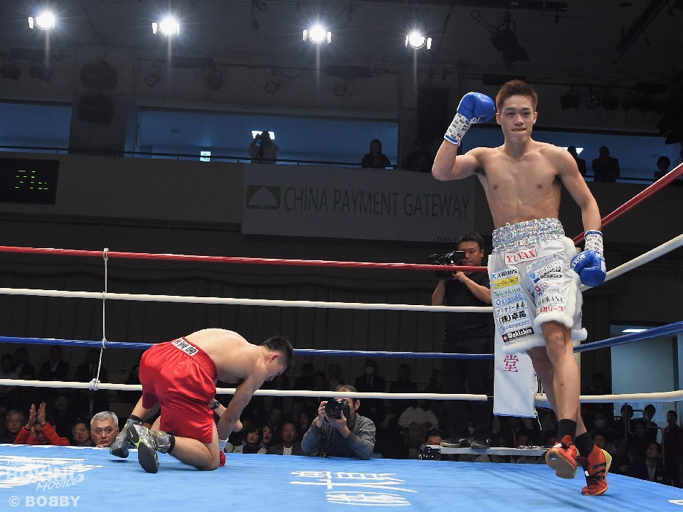 ライト級6回戦では湯場海樹(19=ワタナベ)とスー・バオション(25=中国)が対戦。長身サウスポーの湯場は、ジャブで距離を測るとワンツーをヒットさせ、さらにスーの右を外して左ストレートを決めた。2回終了間際にカウンターの左ストレートで倒した湯場は、無理をせず着実にダメージを与えると、粘り強いスーをKOすることはできなかったが終始ペースを握り続けた。