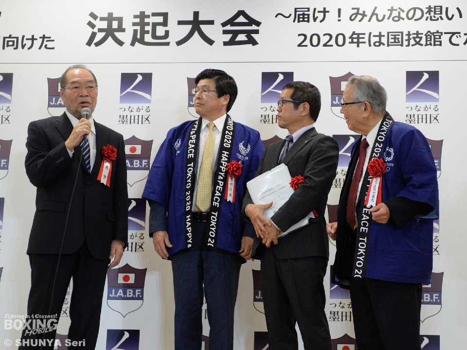 墨田区には2020年東京五輪のボクシング競技場を予定している両国国技館があり、山本亨区長は署名活動でも2万1千票を集めてボクシング連盟に提出。「他の競技の選手と比べても、ボクシングの選手は紳士的でかっこいい印象を持った。両国国技館は墨田区唯一の五輪会場。世界中の若いアスリートに夢を持って競技に臨んでほしい」と思いを語った。