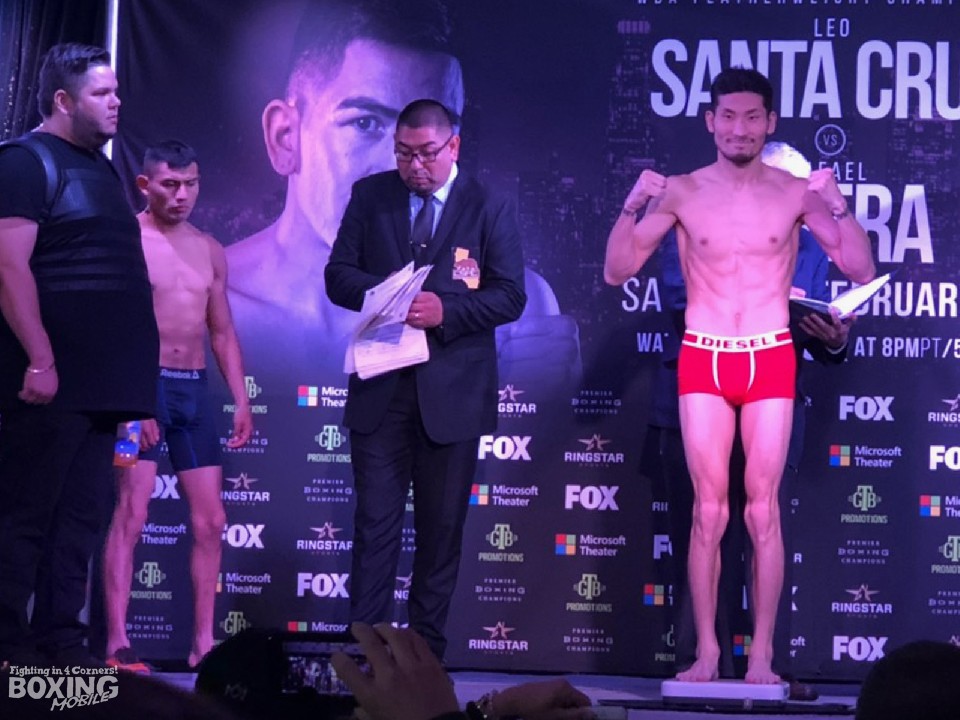 なお、メインイベントでWBA世界フェザー級王座の3度目の防衛戦に臨むスーパー王者のレオ・サンタ・クルス(メキシコ)は、フェザー級リミットの57.1kgを下回る56.9kg、挑戦者で同級11位のラファエル・リベラ(メキシコ)が57.0kgで計量をクリアした。