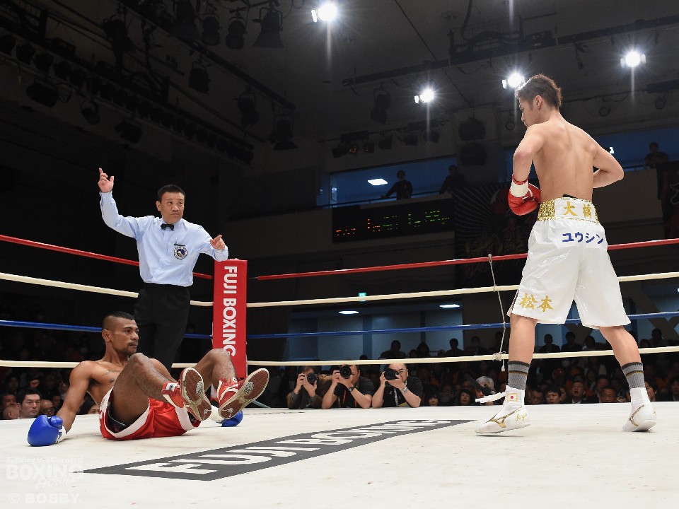 試合は松本が強打を爆発させて圧勝した。初回に左ボディで倒すと立ち上がってきたオビスルに連打から打ち下ろしの右ストレートでダウンを追加。2回にワンツー左ボディでフィニッシュした。