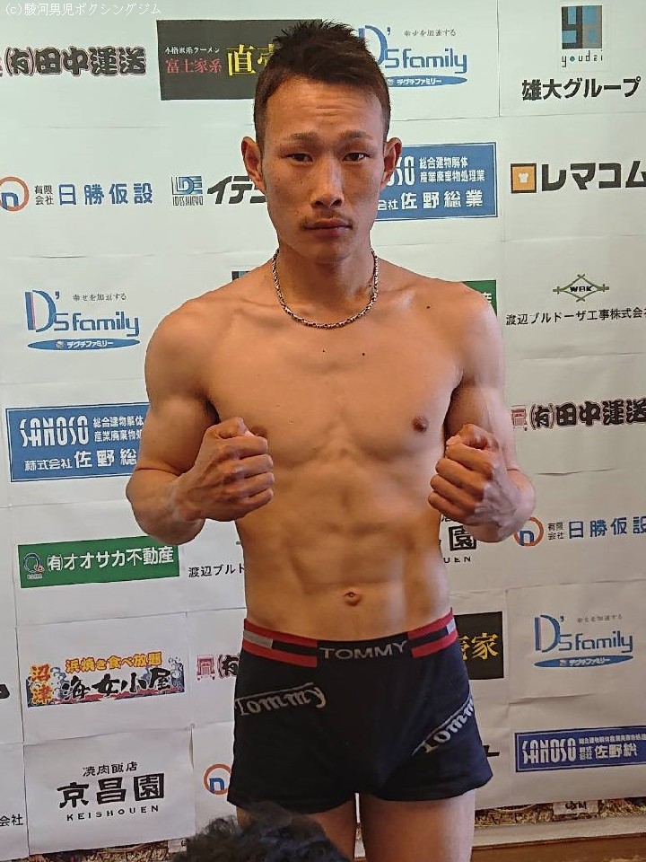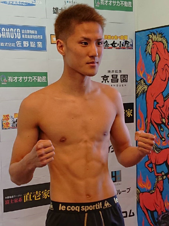 ここまで3戦全勝(3KO)の村地翼(22=駿河男児)は53.0kg契約8回戦でWBOアジアパシフィック・スーパーフライ級7位のレイモンド・タブゴン(28=比)と拳を交える。200gアンダーの52.8kgでクリアした村地は、「今年一発目の試合になるが飛躍の年にするので、明日はインパクトのあるKO勝ちで知名度を上げたい」とコメント。わずか4戦目でフィリピン人からランキングをもぎ取りに行く。一方、これが初来日のはタブゴンは600gアンダーの52.4kgで計量を終えた。