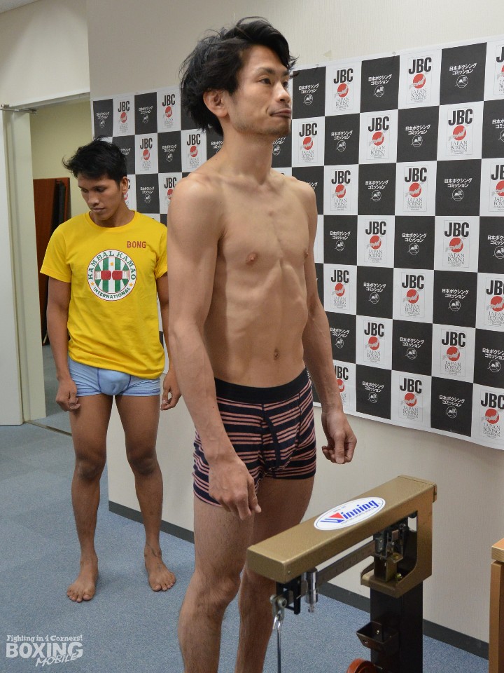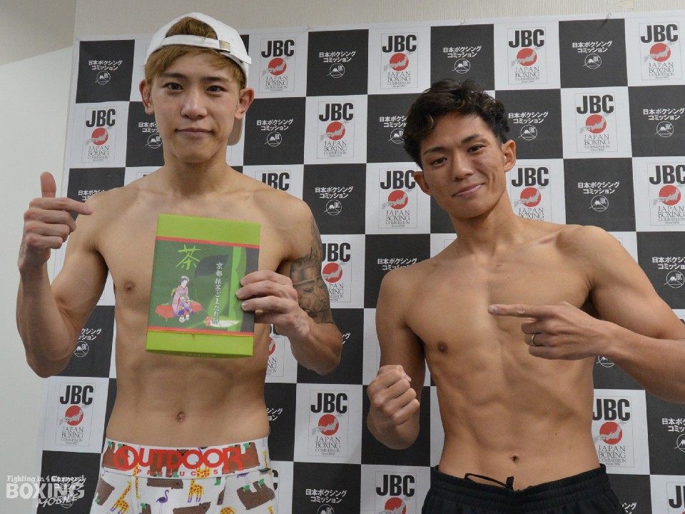 31日に後楽園ホールで開催される「三迫ジム一門会.68&GENKOTSU」のメイン、日本フライ級8位の藤北誠也(三迫)と日本ライトフライ級15位の成塚亮(ワタナベ)によるライトフライ級8回戦の前日計量が日本ボクシングコミッション本部事務局で行われ、ともにリミットの48.9kgを100g下回り一発でパスした。