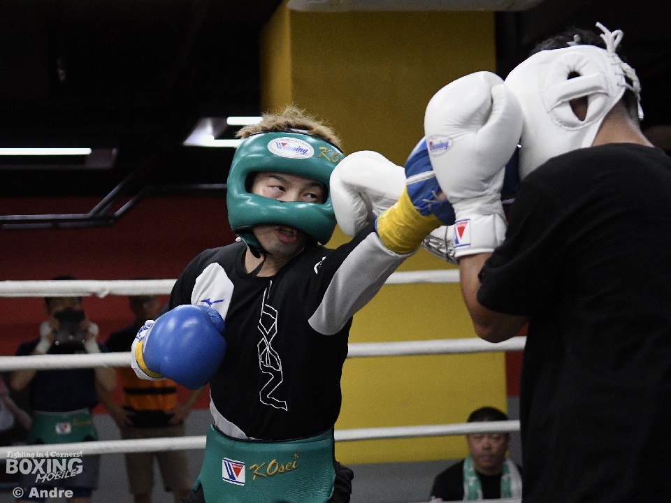 フィリピン合宿5日目は、入念なウォーミングアップ後、カルロ・ペニャロサを相手に4ラウンドのスパーリングを披露。地元で王者との手合わせに興奮気味だったサウスポーのペニャロサは、序盤から好戦的にワンツーを狙った。一方、連日の猛暑の中の練習で疲れが残る田中だったが、強烈な右でペニャロサを押し返すと、左ボディで動きを止め、終始攻めの姿勢でスパーリングを終えた。