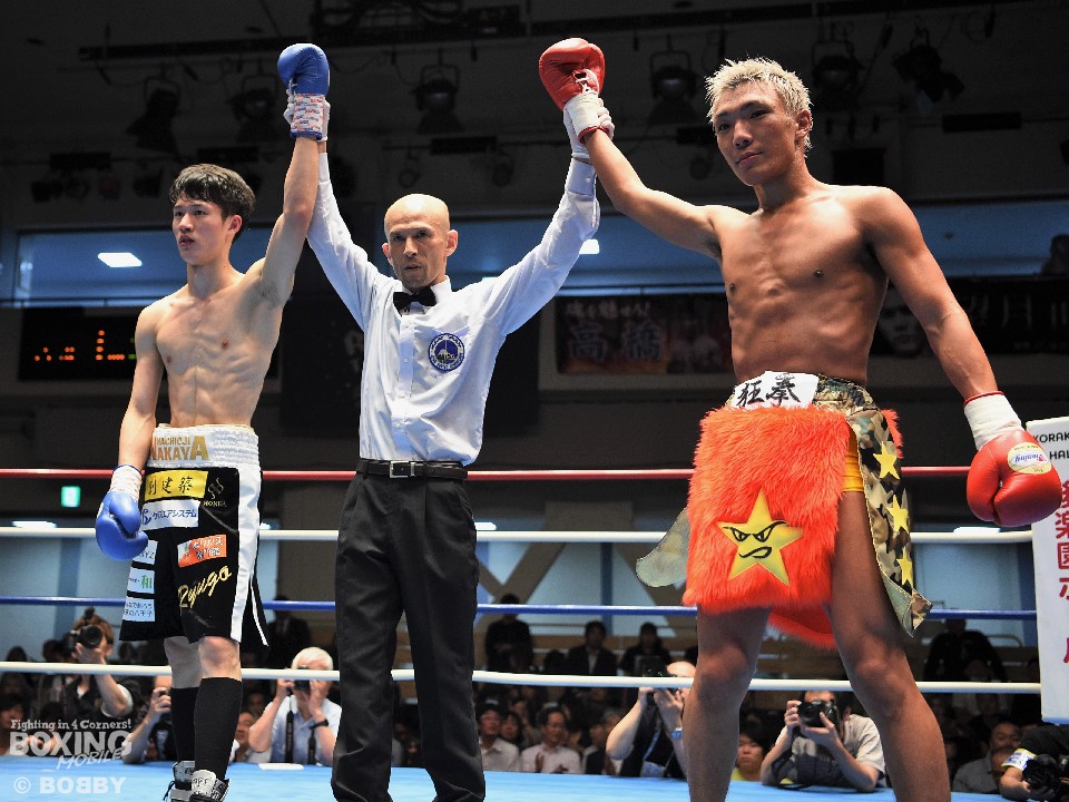 牛島が切れ味鋭いジャブでプレスをかければ、亀田は打ち終わりに左フックを狙いスリリングな展開を見せる。2回、両者とも中間距離でワンツー、左フックを打ち込み意地の張り合いを見せた。3回、牛島がワンツー、左ボディで優勢に進めていたが、ラウンド終盤に亀田が左フックから右ストレートでグラつかせ攻勢。このまま一進一退の攻防を見せて試合終了のゴングを聞いた。ジャッジは三者三様の引き分けとなったが、トーナメント特別ルールで亀田が次戦にコマを進めた。