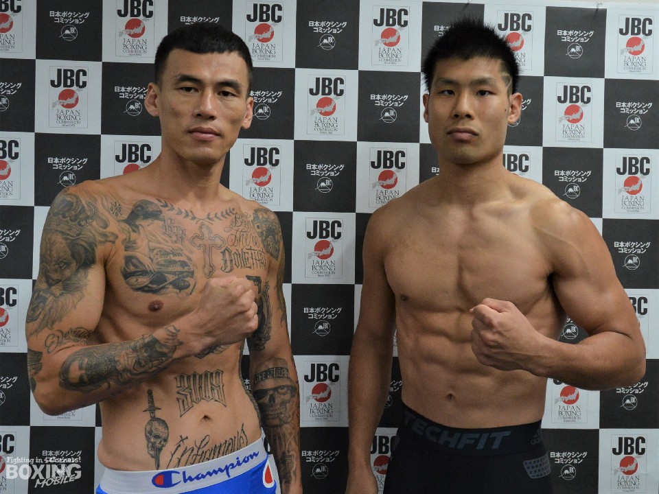 スーパーライト級6回戦に出場する小林孝彦(TEAM10COUNT)とチャ・ジョンハン(韓国)が24日、都内の日本ボクシングコミッション本部事務局で前日計量に臨んだ。試合は明日の25日に後楽園ホールで開催される「DANGAN日韓親善試合」のメインイベントにセットされている。