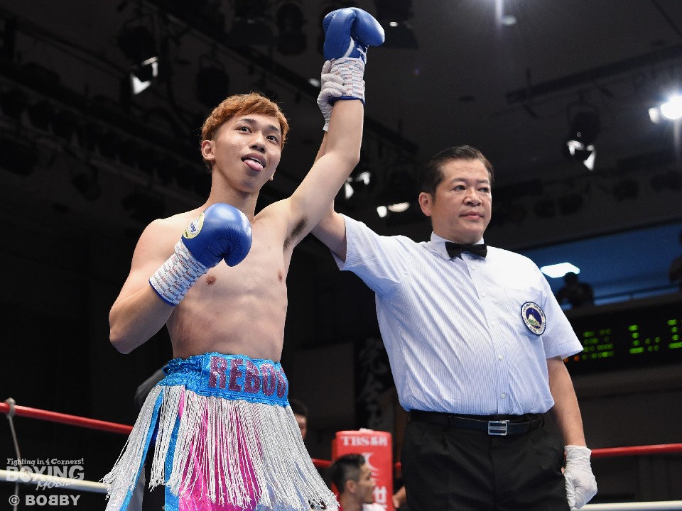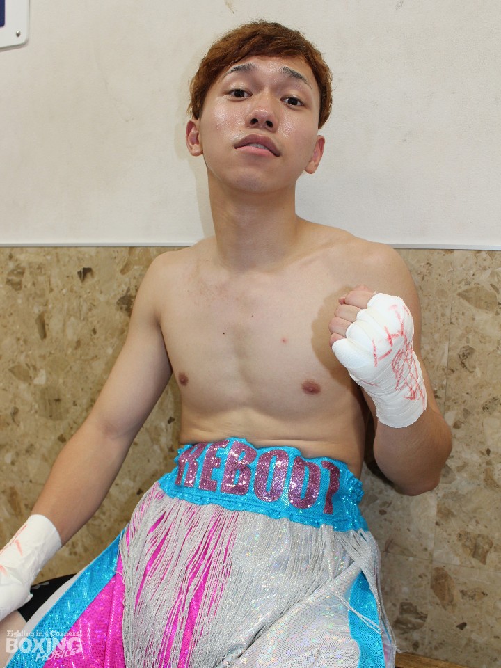 ゴングと同時に若木が飛び出し右フックを繰り出すが、サウスポー富岡は軽快なフットワークで外し左クロスを決めて先制のダウンを演出。再開後は右フックでグラつかせるとレフェリーが割って入った。17歳の富岡がわずか42秒で試合を終わらせた。