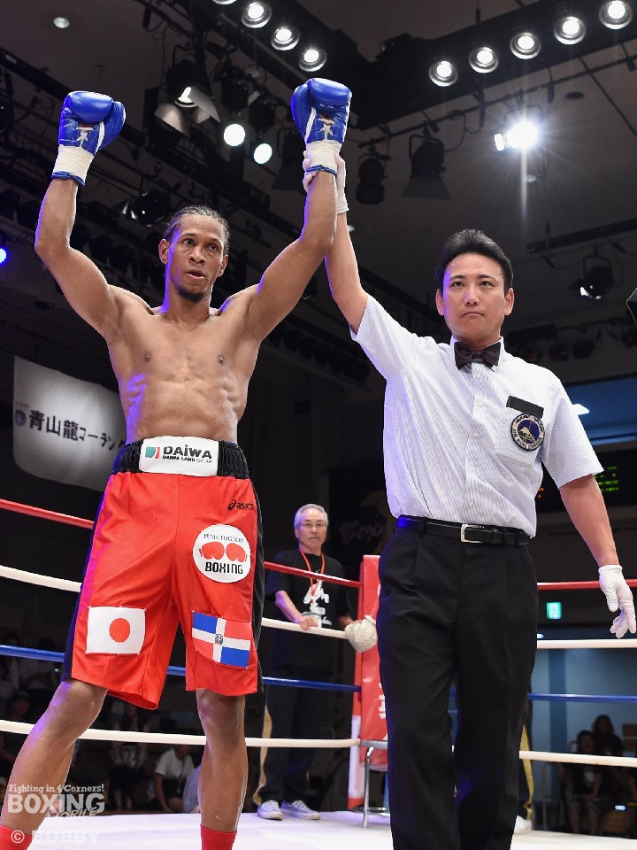 日本スーパーライト級9位のディスティノ・ジャパン(35=ピューマ渡久地)と日本ライト級13位の岩原慶(28=本多)が2日、後楽園ホールで開催された「ザ・グレイテスト・ボクシング」スーパーライト級8回戦で対戦した。試合はドミニカ人ボクサーのディスティノがジリジリと距離を詰めて攻め立てた。