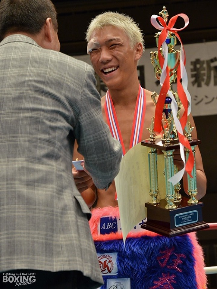 敢闘賞は、スーパーライト級の本多航大(20=川崎新田)が獲得。小林柾貴(20=イマオカ)と序盤から激しい打撃戦を繰り広げたが、フィジカルの強さで押し勝つと右フックでダウンを奪い連打で仕留めた。