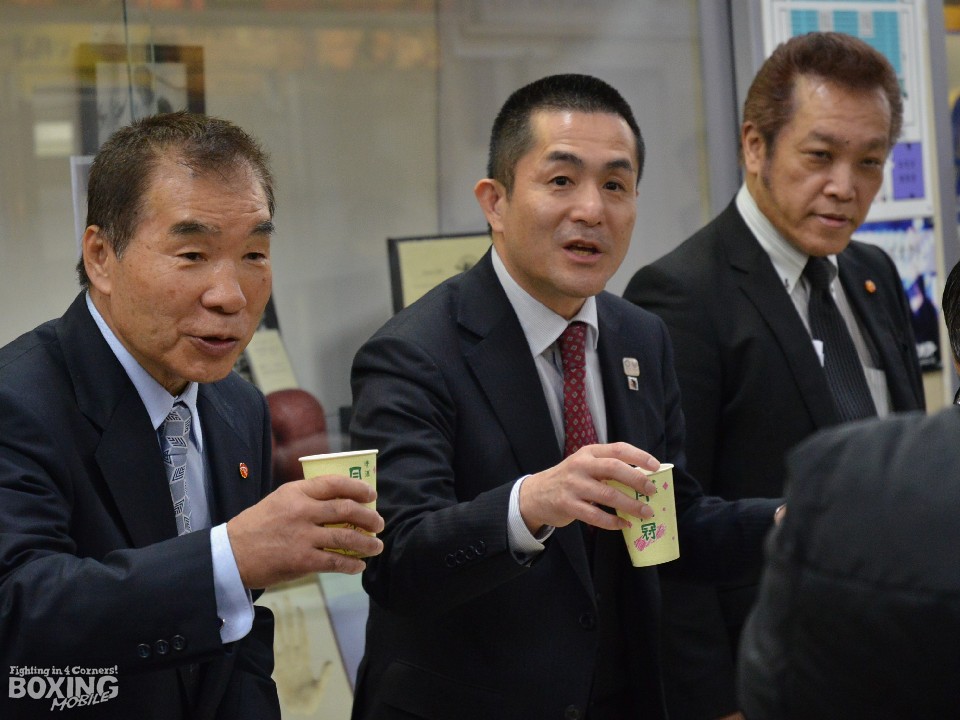 開場後には、花形協会長と新田渉世事務局長が後楽園ホールのエントランスで来場者を迎え、恒例のお神酒を振舞った。いよいよスタートしたオリンピックイヤーのボクシング界。今年も選手たちの安全と活躍を願って止まない。