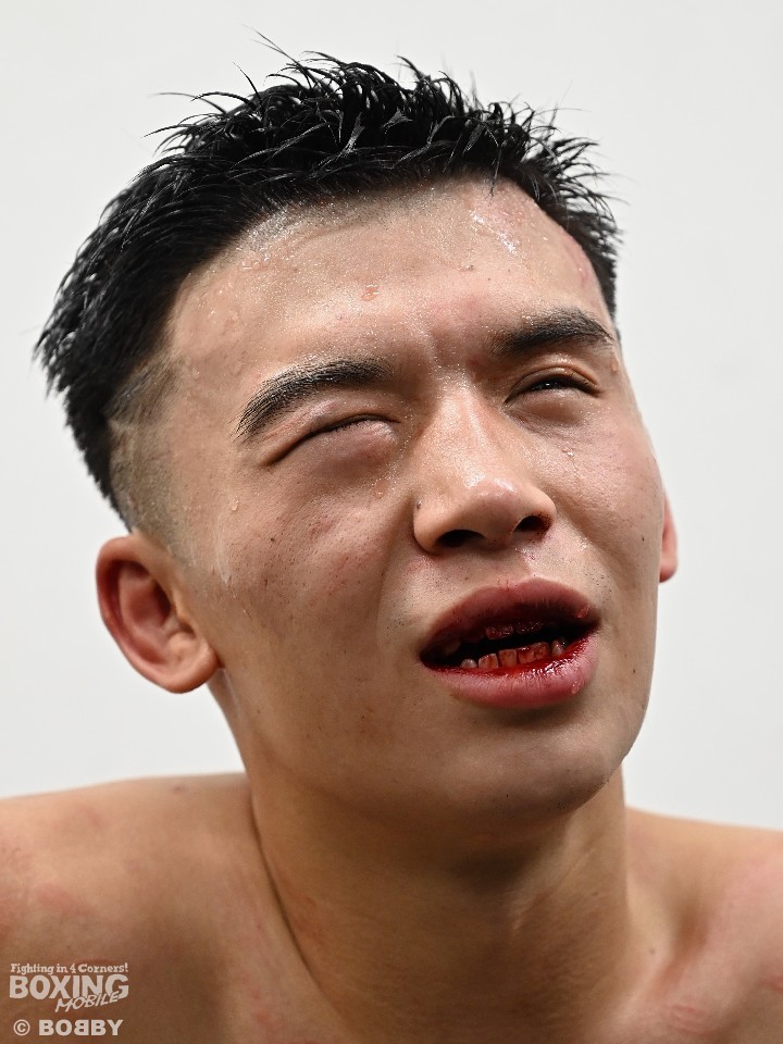 控室に戻った定常は左目を腫らしながら取材に応じた。「リズムを生かした攻撃を心掛けたが、パンチを当てるタイミングが悪かった。冷静に戦い過ぎたのがマイナス点でクリーンヒットが少なかった」と反省の言葉が並んだ。