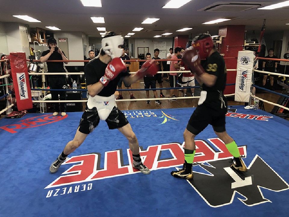 最初にスパーのリングに立ったのは、昨年度スーパーフェザー級全日本新人王の谷口彪賀(21=八王子中屋)。相手は格上の昨年1月に米国・ニューヨークで世界初挑戦した高橋竜平(30=横浜光)で5ラウンドのスパーで汗を流した。高橋の猛烈なラッシュになんとか耐えた谷口は、8月31日に60kg契約6回戦で龍神佳輝(24=ワタナベ)と対戦する。