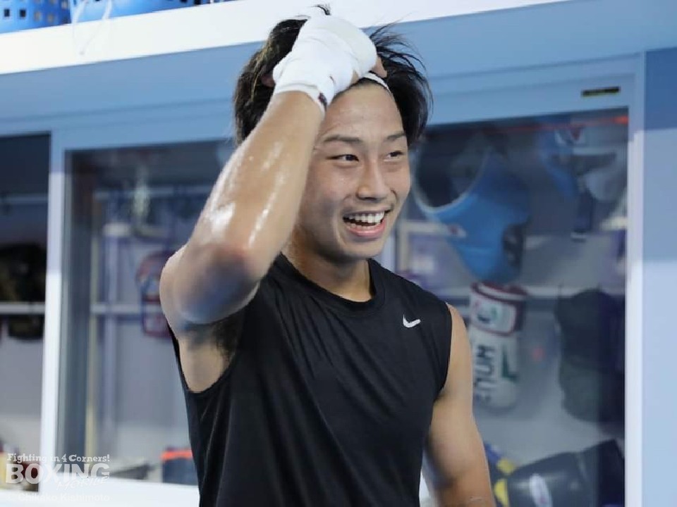 この日は担当トレーナーが不在のため、前WBOアジアパシフィック・ライトフライ級王者の冨田大樹(22)とのミット打ちで汗を流していた。「大樹君にはいろいろと教えてもらったり、試合前にはメッセージもらったりしている」と言うと、「試合を楽しんでしっかりと勝つ」と意気込んだ。