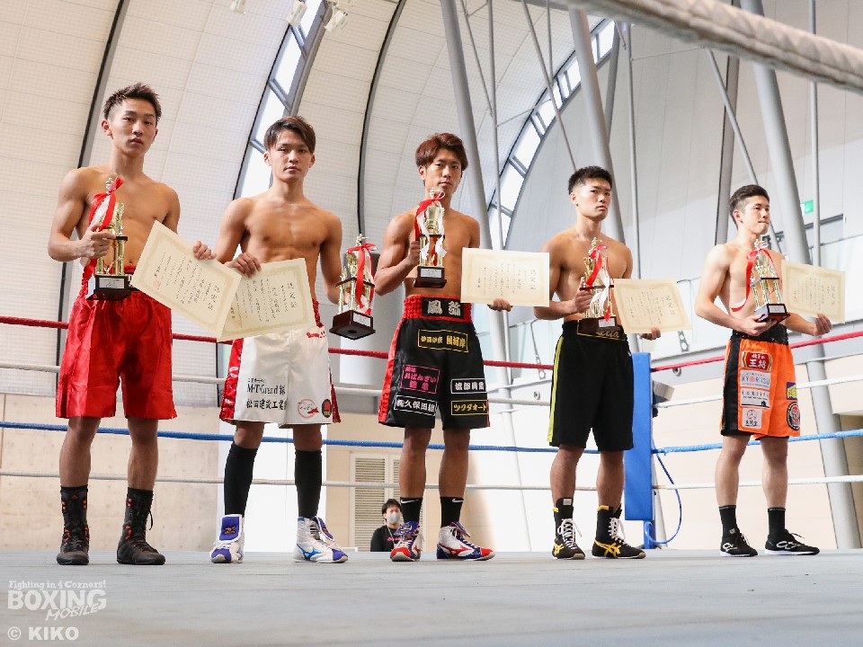 最優秀選手賞(MVP)はスーパーバンタム級の安西蓮(20=岡崎)が受賞した。阿部史也(21=タキザワ)と対戦した安西は、ノーモーションの右ストレートでダウンを奪うと、冷静に攻め立てレフェリーストップに持ち込んだ。