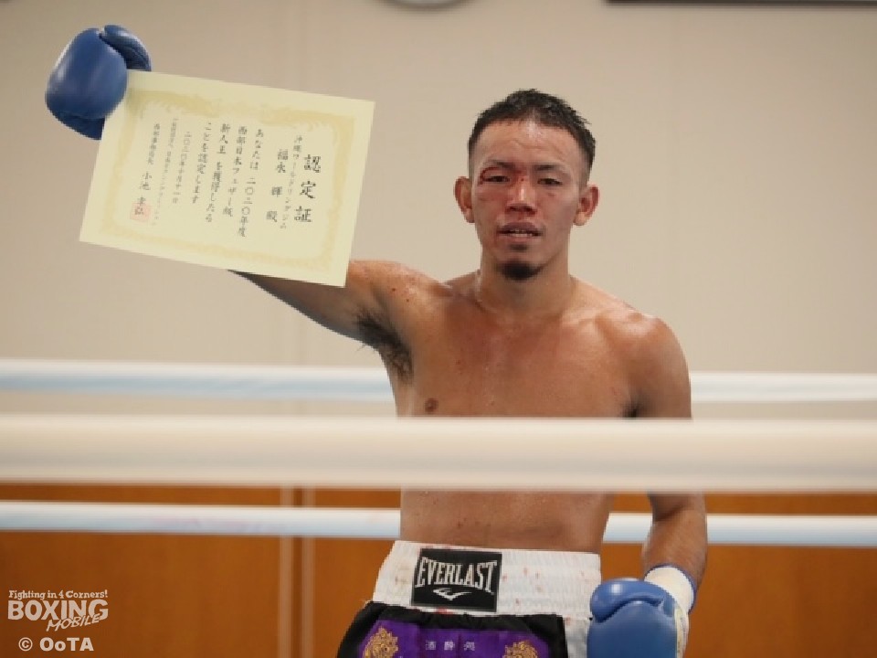 これが3度目の新人王トーナメント参戦の福永が、接戦を制して西部日本新人王に就いた。試合後に取材に応じた福永は「冷静に相手を見るように意識したが、落ち着きすぎてしまった。途中からジャブが当たりはじめたので左フックを狙うことができた。左ボディに手応えがあったので倒しにいきたかったが、ボディ攻撃からの返しのパンチがあと一歩足りなかった」と勝利にも反省の言葉を並べた。