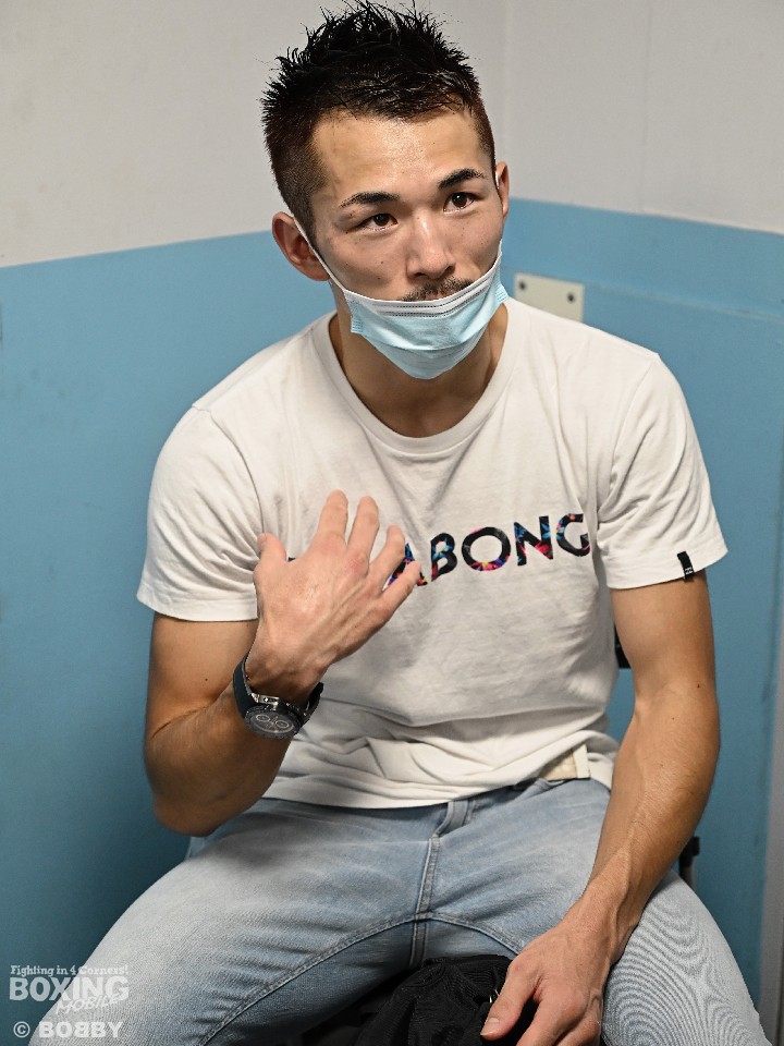 「相手の左を警戒していたが、わかっていてパンチをもらうのは良くない。もう半歩近い距離で戦いたかったが…。今日の出来は50点」と自らの出来に首をひねった。