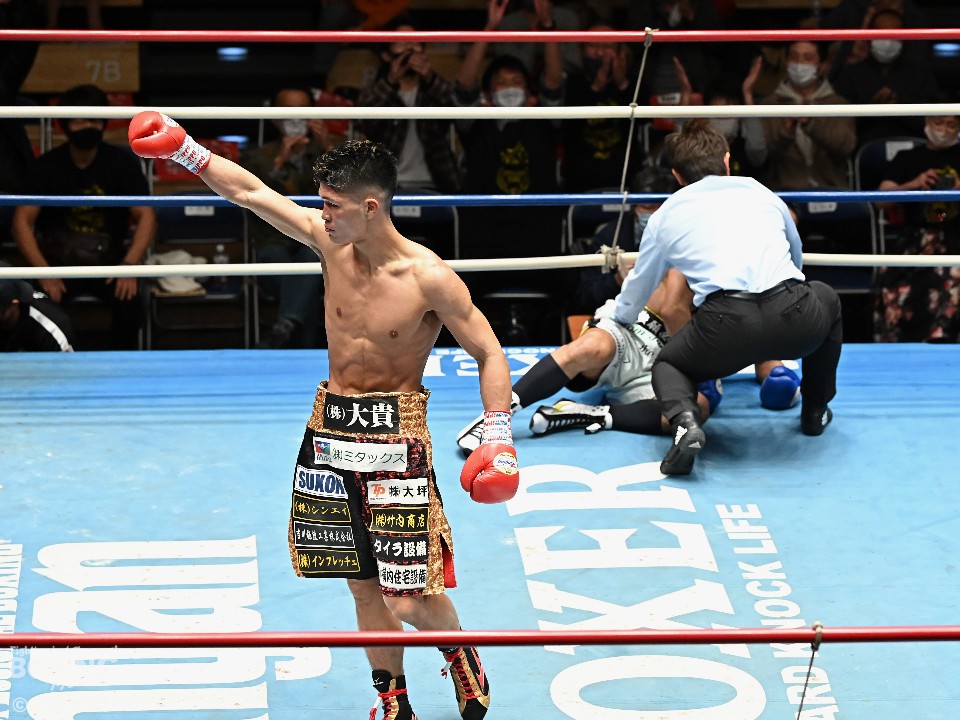 立ち上がりは、ノーランカーの酒井が先制攻撃を仕掛けたが、宇津木は冷静に対処するとジャブから上下に打ち分けてペースを掌握。右フックを決めて先制のダウンを奪った。2回、宇津木はワンツーを決めて2度目のダウンを奪うと、レフェリーはノーカウントで試合をストップ。倒れた酒井は、しばらく起き上がれないほどのダメージを負った。