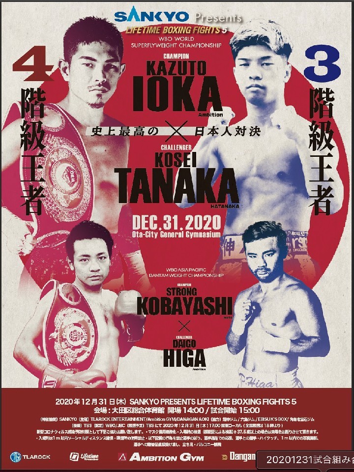 一方、田中は2018年9月に当時のWBO世界フライ級チャンピオン木村翔(青木→花形)に挑戦し、判定勝利で王座を獲得し、日本人としては最速で世界3階級制覇を果たした。2019年3月には元WBA世界ライトフライ級スーパーチャンピオン田口良一(ワタナベ→引退)を挑戦者に迎えて初防衛に成功した。