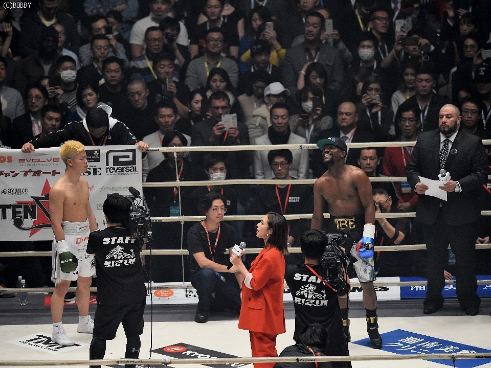 ゲストには総合格闘家の那須川天心(22)が出演し、日本におけるタイソンの代理人を務めていた解説のジョー小泉氏とともに収録を盛り上げた。ボクシング番組には初出演となった那須川に収録後、WOWOWがインタビューを行った。