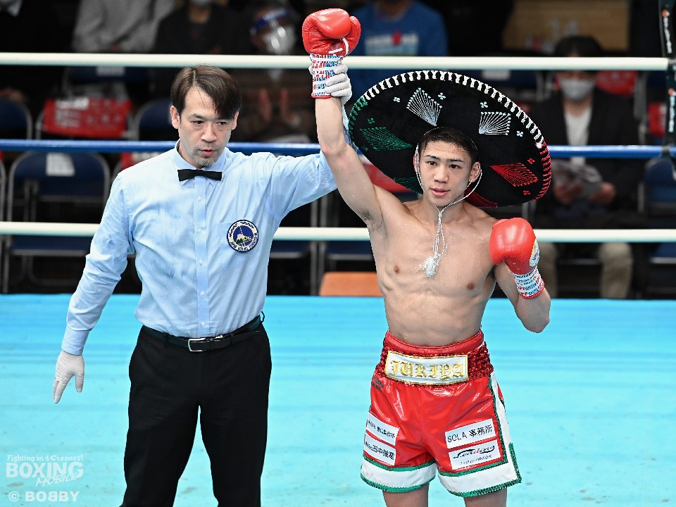 「これまでは相手の正面に立つことが多かったので、メキシカンスタイルを参考にして半身で構えた。アマチュア時代の長所を消さずにプロ用の戦い方をミックスした」と語った飯村は「穴のないボクシングを確立させていきたい」と飛躍を誓った。