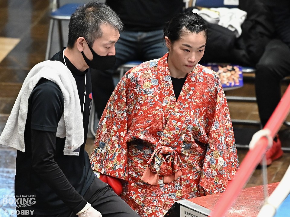 第6試合アトム級4回戦では武藤美希子(32=アキバ・ヤタベ)と岸百合恵(33=T&H)が拳を交えた。初回終了間際に岸がワンツーでダウンを先取。立ち上がった武藤は、ジャブから右カウンターで反撃したが、岸も左フックを決めてペースを渡さなかった。約3年8ヶ月ぶりにリングに上がった武藤だったが勝利を掴むことができなかった。