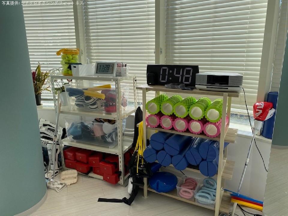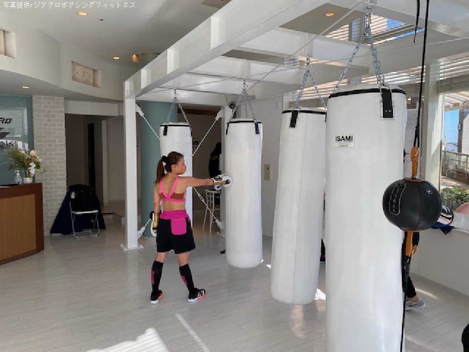 「女性に怖い、痛いというイメージを一掃したくて」とジムは白色を基調し、サンドバッグもすべて白で統一されていて清潔感を感じさせる。